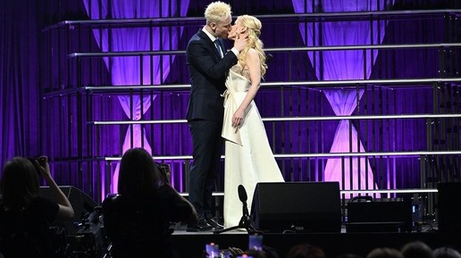 Можно так, а можно и так: Карающий меч надзора за интернетом и орало сошлись в любовном экстазе! Зрителям предложили даже свечку подержать! Орало было громким, а меч - скромным и девственным. Все пришедшие поняли, что они - свидетели! А что? Недорого и патриотично. Они - русские! Красивые и молодые! Одухотворённые и духовно высокие! Нам остаётся только завидовать. А какие у них детки будут? Мизульки и шаманчики, все во дворе завидовать станут, ой, что это я, во дворце, конечно...