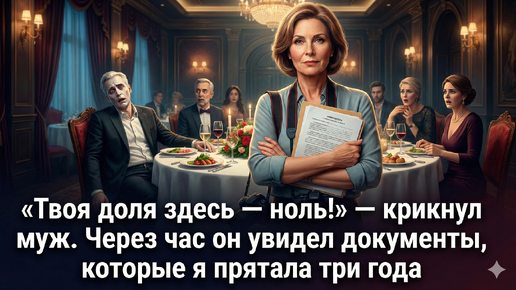 «Твоя доля здесь — ноль!» — крикнул муж. Через час он увидел документы, которые я прятала три года
