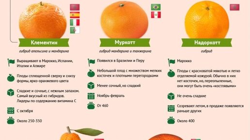 Топ-пять сортов мандаринов, которые продаются в России. Инфографика