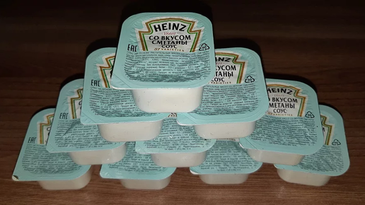 И это оказалось не пакеты с традиционными крупами, продуктами и консервами, а целых 50 одинаковых порционных соусов Heinz со вкусом сметаны.