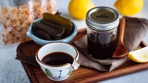 Японский соус Понзу ( для ценителей японской кухни ) Сок лимона - 100 мл. Водоросли Комбу - 10 см. Стружка Кацуобуси - 5 гр. Нибоси ( сушеные рыбки ) - 5 шт. Сахар - 1 ч.л. Соевый соус - 150 мл.