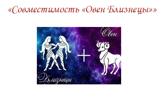 Совместимость мужчины Овна и женщины Близнецов Совместимость мужчины Близнецов и Овна женщины Удачное сочетание, в котором любовь плавно перетекает в партнерство, а деловые отношения — в дружбу, и наоборот. Прямолинейность Овна уравновешивается многовариантностью Близнецов. Сходятся такие пары быстро, расходятся тоже быстро. Браки веселые, но непрочные. Непостоянство обоих часто ведет к разрыву отношений: оба скучать не любят, а вокруг столько соблазнов! Это хорошие друзья, любовники, партнеры, но никудышные мужья и жены...
