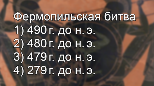 «Спартанцы, каково ваше ремесло?» Сражение при Фермопилах давно стало символом мужества и самоотверженности. Всего около семи тысяч греческих воинов, включая знаменитых 300 спартанцев во главе с царём Леонидом, остановили продвижение огромной армии персидского царя Ксеркса. Их героическая оборона узкого горного прохода дала время союзникам подготовиться и вдохновила будущие поколения. Но в каком году произошла эта битва? Когда произошло Фермопильское сражение? 1) 490 г. до н. э.2) 480 г. до н. э...
