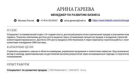 Пример резюме специалиста в коммерческий отдел 2025 - Как составить