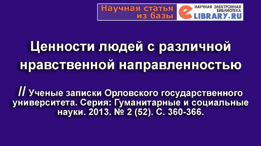 Аннотация. В статье рассматривается значимость жизненных ценностей для людей с положительной нравственной направленностью в сравнении с людьми с нейтральной и отрицательной нравственной направленностью. Обнаружены различия в оценках значимости 32 из 85 предложенных для оценки ценностей, среди которых ценности материального, личного и семейного благополучия, успеха, признания, уважения, свободы, защищенности, альтруистические ценности. Анализируются причины выявленных различий. Ключевые слова: ценности, нравственные качества, нравственная направленность личности, эгоизм, нравственные убеждения...