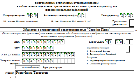 Образец заполнения нулевого расчета 4-ФСС в 2022 - 2023 годах