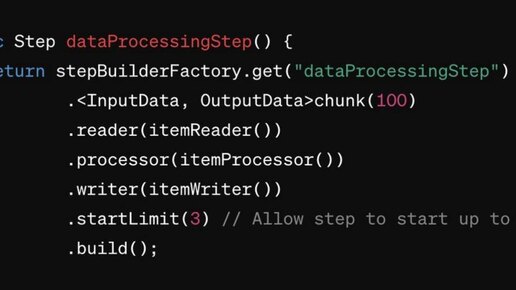 🚀 Spring Batch совет Хочешь контролировать, сколько раз может стартовать конкретный шаг в Spring Batch? Используй параметр startLimit — он задаёт максимальное число запусков для step'а. Полезно для случаев с повторными попытками, защитой от бесконечного рестарта и строгим контролем бизнес-логики...