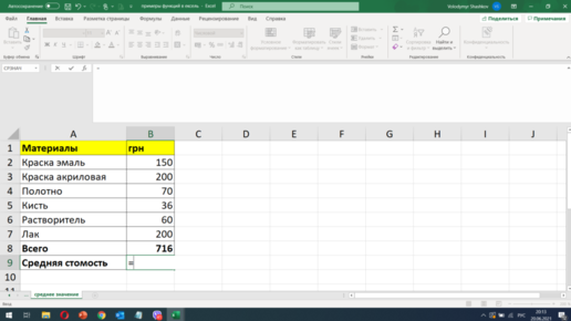 Формула среднего значения в excel