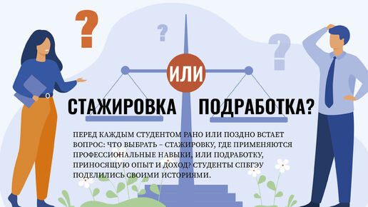 Перед каждым студентом рано или поздно встает вопрос: что выбрать – стажировку, где применяются профессиональные навыки, или подработку, приносящую опыт и доход? Студенты СПбГЭУ поделились своими историями. Стажировка – это возможность уже в студенческие годы погрузиться в реальные проекты, работать бок о бок с профессионалами и почувствовать, как становишься частью рабочего механизма. Только разграничивайте понятия практика и стажировка. Учебная практика входит в образовательную программу СПбГЭУ и является обязательной...