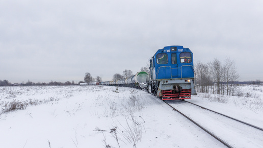 Железная дорога посреди поля, по которой то и дело катаются синие тепловозы с огромными составами!