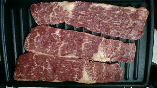 Доброго времени суток уважаемые читатели. Сегодня я опробовал стейк минутка из мраморной говядины от компании Мираторг. Брал в фирменном магазине по акции, получилось 150 рублей за упаковку. Кстати говоря, советую заезжать за стейками в магазин Мираторг в будние дни с понедельника по четверг, очень часто на разные стейки есть хорошие скидки, самую большую скидку видел в 40%. Вернемся к нашему стейку, Минутка "изготавливается" из внутренней части бедра. В упаковке обычно находится от 3 до 5 кусочков говядины общим весом 190 гр...