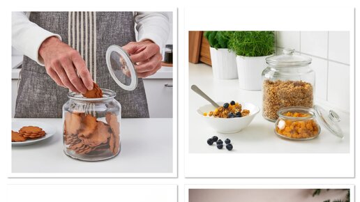 Оцените разнообразие ассортимента ИКЕА: банки для сыпучих продуктов вроде кофе, чая или сахара, стеклянные банки и банки с закручивающимися крышками, в которых можно хранить домашнее варенье и пасту. Выбирайте...
