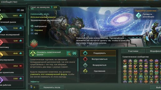 Господин губернатор, проходите, присаживайтесь. Из галактического сообщества нам пришёл список резолюций, которые были предложены на рассмотрение. И мы, как равноправные участники, должны обозначить свою поддержку или несогласие с какими-то из них...