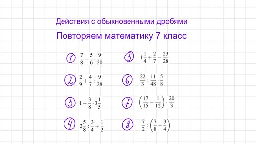 Действия с обыкновенными дробями. Повторяем математику за 7 класс