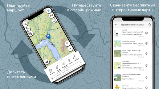 Скачивайте туристические офлайн-карты, отмечайте места на карте, записывайте GPS-треки и делитесь впечатлениями в популярных форматах.