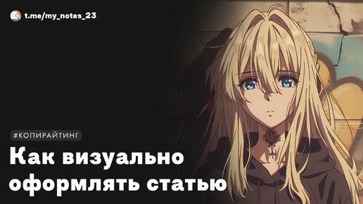 https://t.me/my_notes_23 Всё о том, как оформлять статью визуально от А до Я. Крч, читай статью, всё, что нужно по оформлению, я рассказал. Содержание: Правила визуального оформления Правила визуального оформления 2 Итог Статьи Правила визуального оформления Под визуальным оформлением я подразумеваю, что нужно задействовать все возможные ресурсы, которые предоставляет нам платформа. Вне зависимости от платформы: Дзен, ВК Статьи, телега — все они содержат схожий функционал, с помощью которого можно...