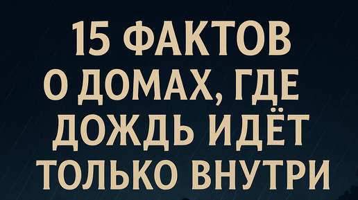 ВСТУПЛЕНИЕ Представьте себе место, где реальность ломается, а привычные законы физики работают только наполовину. Дом, в котором снаружи сухо, а внутри — льёт как из ведра. Потолок капает, как гроза в июле, стены мокнут изнутри, а лужи появляются даже там, где стекла нет и быть не должно. Сегодня вы прочитаете 15 удивительных фактов о самых таинственных домах, где дождь идёт исключительно внутри. Если вы любите мистику, странности и истории, которые заставляют пересматривать привычное — обязательно...