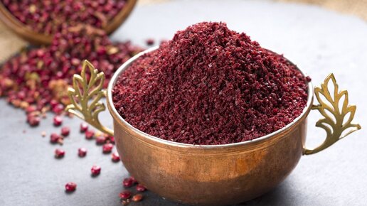 Сумах – это популярная специя восточной кухни. Она имеет яркий бордовый оттенок, отчего используется как краситель во вторых блюдах. Специя обладает приятным кислым вкусом, часто заменяет лимон в рецептах...