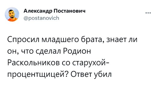 А если вам нравились уроки литературы в старших классах школы, то сможете максимально прочувствовать сей пост. 1. Вероятно, лучше уже и не затроллить 2. Когда сразу не нашёл общего языка с собеседником 4. Это же Бунин, у Тургенева главный герой имел иные проблемы 5. "Вайбами золотистого ретривера"... Господи, что это значит? 6. И это ладно когда "follow up" написано, а не фолоуап... Тут ведь вообще не сразу догадаешься, чего они хотели... 7. Судя по хмурой аватарке, антител в организме с избытком 8...