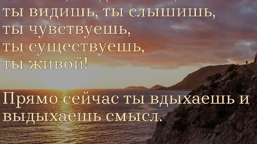 Человек является единственным существом на планете, которому нужен смысл для того, чтобы жить. Животные и растения не нуждаются в смысле. Животные и растения не задаются вопросами о смысле жизни. Птицы встречают пением новый день, цветы распускаются, источая прекрасный аромат, солнце восходит, озаряя светом и теплом землю. Ни птицам, ни цветам, ни солнцу не нужны смыслы, потому что они находятся в тесной взаимосвязи с существованием. Когда существа слиты воедино с существованием, их не интересуют вопросы касательно смысла жизни...