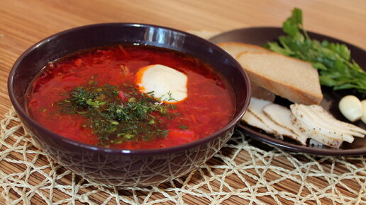 Вкусный украинский борщ со свеклой, фасолью и капустой на мясном бульоне