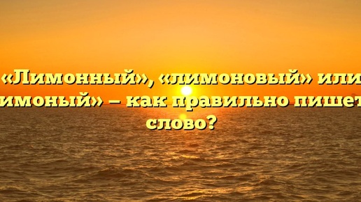 ? Если не знаете, как правильно – «лимонный», «лимоновый» или «лимоный», необходимо руководствоваться орфограммой № 39. Как пишется правильно: «лимонный», «лимоновый» или «лимоный»? Безошибочно написано первое слово – «лимонный». Какое правило применяется? Слово «лимонный» представляет собой качественное прилагательное, употребляемое в речевом процессе в значении – «связанный, соотносящийся по значению с существительным «лимон»; цвета лимона (светло-желтого)»...