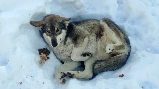 Позвонила мне женщина. Голос дрожал от страха и беспомощности. Сказала, что собачка уже второй день лежит в сугробе и не уходит. Не ест. Не двигается. И это красное пятно под правым бедром... Я понимала её ужас - подойти к незнакомому животному, которое может быть смертельно раненым, страшно. А вдруг оно кинется от боли? А вдруг там такое, что лучше не видеть? Когда я приехала и увидела её в том сугробе, сердце сжалось от ужаса. Идти она отказалась наотрез - я поняла, что каждое движение причиняет нестерпимую муку...