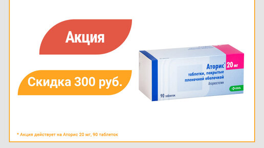 Скидка 300 руб. на Аторис 20мг №90