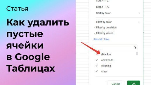 Как удалить пустые ячейки в Гугл Таблицах