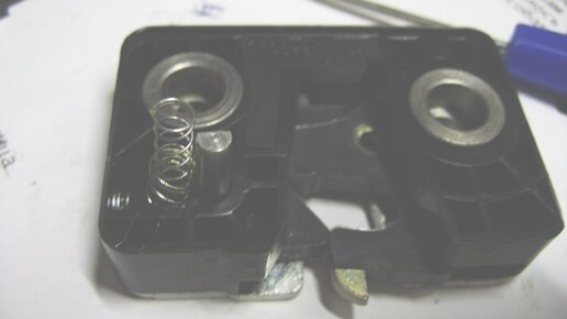 Сейчас я дам вам еще один совет из своей практики. Если у вас российский автомобиль, то следуя моему совету, двери вашего автомобиля будут закрываться и открываться как на иномарке. Все замки на российских автомобилях одинаковые. Начиная с Ваз 2108 и до Приоры,а теперь и на Уазиках Патриот и Пикап. Первым делом нужно снять замок с двери. Он крепится на двух болтах. Повернув его вы увидите под рычажком открывания двери две пружинки. Одна внутри другой. Так вот надо вынуть внутреннюю пружинку и оставить в дверном замке только наружную...