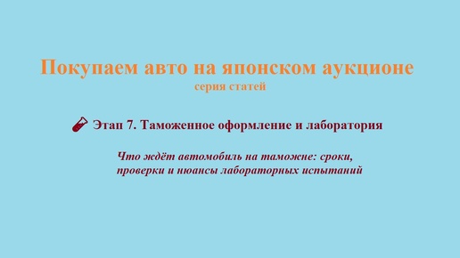 🧪 Этап №7. Таможенное оформление и лабораторные испытания: финальный шаг перед встречей с машиной