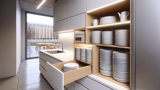 Современные дизайнеры интерьеров единодушны: традиционное хранение тарелок в навесных шкафах давно устарело и даже опасно. Эргономисты поддерживают эту позицию, предлагая кардинально пересмотреть организацию кухонного пространства. Новый подход меняет привычные правила и делает работу на кухне намного безопаснее. Несколько тарелок в стопке весят прилично, а поднимать такой груз над головой крайне рискованно. Балансируя на носочках перед открытым шкафом, легко потерять равновесие или выронить посуду...