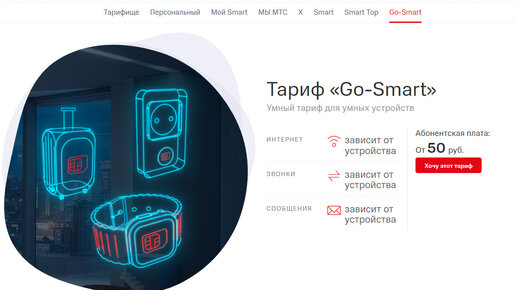 В параметрах тарифа Go smart на сайте МТС не указано ни количество интернета, ни количество звонков и смс, входящих тариф. Точного указания цены тарифа тоже нет.:) Однако этот тариф может быть весьма интересен и не только для умных устройств...