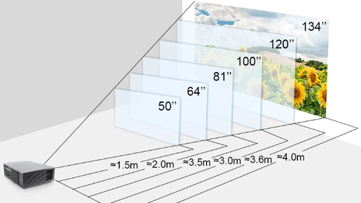 Стандартное расстояние от проектора до экрана, на котором создается проекция – 150 см. Однако не всегда есть возможность расположить объектив на таком удалении от экрана. Приходится искать модель с длиннофокусным или короткофокусным, а то и ультракороткофокусным объективом. Ситуация усугубляется рядом особенностей: Прежде, чем приступить к выбору конкретной модели, заранее узнайте размер экрана, с которым планируете использовать проектор. Диагональ экрана необходима для расчета проекционного отношения, о котором ниже...