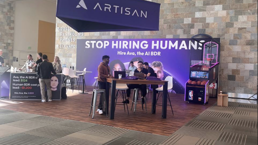 “Избавься от человека”, “Найми на работу Искусственный Интеллект Аву” - эти и другие лозунги на конференции ТехКранч в Сан-Франциско в 2025 году. Стэнд компании Atisan AI, разработчика ИИ-агентов: "Прекратите нанимать на работу людей". В центре Москоун (Moscone Center) часто проводят такие конференции. Если лет 8-10 лет назад на стартап-конференциях говорили о солнечных батареях (solar batteries), гуманизме, роевом интеллекте в интернете вещей (swarm intelligence of IoT devices), а о замене людей...