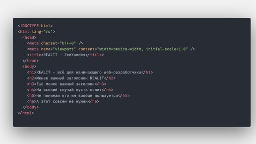 REALIT5 лет назадПодписатьсяC чего начать изучение Frontend? Часть 1.1 - HTML (Заголовки, абзацы и <span>)Ознакомление с заголовками, абзацами и тегом <span></span>.