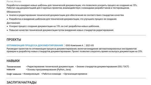 Пример резюме технического редактора 2025 - советы