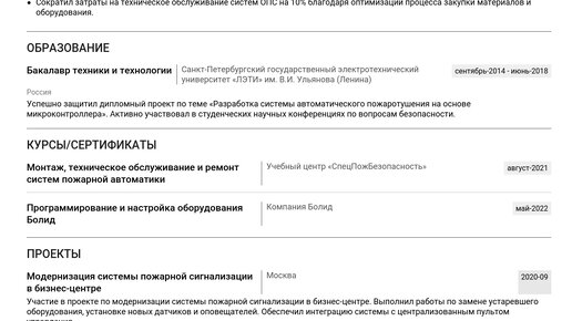 Пример резюме техника по обслуживанию ОПС 2025