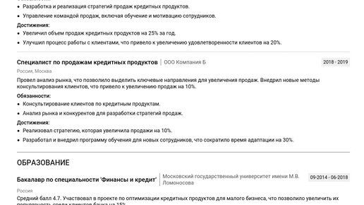 Пример резюме менеджера по продажам кредитных продуктов 2025 - как составить