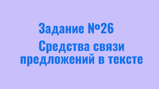 Текст — это группа предложений, объединённых общей темой и связанных между собой с помощью специальных языковых средств для выражения законченной мысли. Связь между предложениями текста всегда выражена через определённые элементы: Именно эти элементы вы ищете в 26 задании. Пример: (1) Ветер усиливался с каждой минутой. (2) Он срывал последние листья с деревьев. (3) Но дождь так и не начинался. Связь предложений: Лексический повтор — это средство связи, при котором одно и то же слово в одинаковой форме повторяется в соседних предложениях...