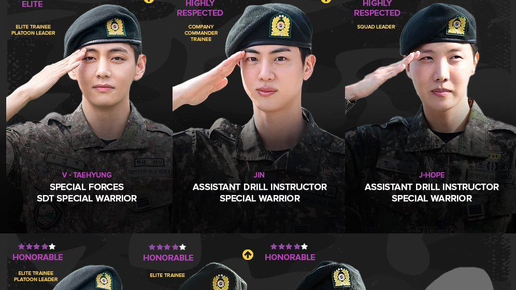 Чем занимались BTS в армии? От сержанта спецназа Тэхёна до элитного инструктора по строевой подготовке Джина, изучим и запомним их военные звания и достижения. 21 июня 2025 года состоится официальное возвращение всех семи участников BTS к гражданской жизни после того, как Шуга завершит свою альтернативную службу. За последние два года каждый участник группы выполнил свои обязательные военные обязанности. Некоторые через действительную службу, а другие через общественные роли. Они заслужили признание за свою приверженность и работу...
