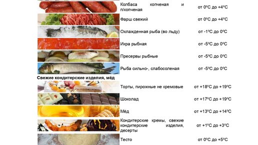 Таблица температур перевозки продуктов питания в авторефрижераторе.