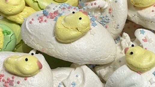 Изготовить меренгу не сложно. Достаточно просто взбить чашку белков с сахаром до белой пенистой массы. Соблюдая определённую последовательность. Вначале взбивать белки до жестких пике, а потом добавлять сахар по ложке за раз и взбивать до однородной, блестящей и стабильной массы. Желательно использовать сахарную пудру, более мелкое зерно способствует более быстрому растворению. Также рекомендуется разогреть сахар в духовке перед добавлением его к яичным белкам в течение 5 минут. Выложить смесь на противень и готовить в слегка горячей печи...