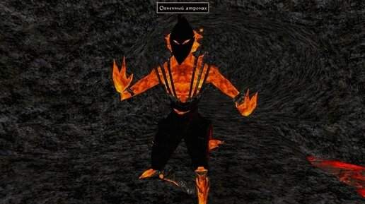 Элементальный голем. Относится к младшим даэдра, но, как и остальные представители рода, не связан ни с кем из Принцев конкретно. Из всех атронахов слабейший, но вместе с тем самый изящный и пластичный. Говорят, в Обливионе в нем уже отчетливо проявлено женское начало. В Морровинде это просто стройная фигура, пульсирующая пламенем, облаченная в необычный черный доспех с маской на лице...