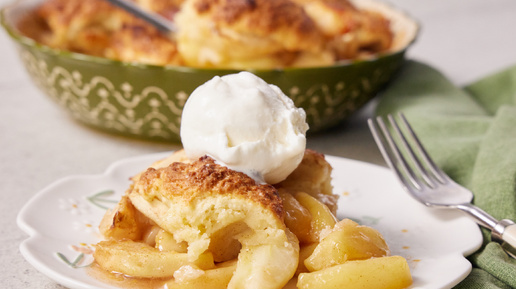 Ингредиенты: Для теста: Мука 180 г Сливочное масло 80 г Яйцо 1 шт. Сахар 80 г Йогурт натуральный 100 г Ванильный сахар 10 г Разрыхлитель 5 г Соль 1 щепотка Для начинки: Яблоки сезонные 6 шт. 800 г Сахар 80 г Крахмал кукурузный 2 ст. л. Корица 1/2 ч. л. Лимон 1/2 шт. Для подачи: Мороженное 300 г Приготовление: 1. В большую миску пересыпать муку, 80 г сахара, щепотку соли, ванильный сахар, разрыхлитель и перемешать. 2. Отправить 80 г сливочного масла в сухие ингредиенты и перемешать рукой до рассыпчатой крошки...
