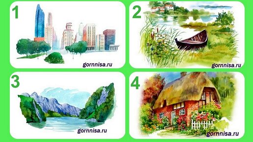 Выберите пейзаж, не раздумывая долго. Прочитайте значение вашего выбора. Пейзаж 1 Вы человек города. Вам необходимо общество.