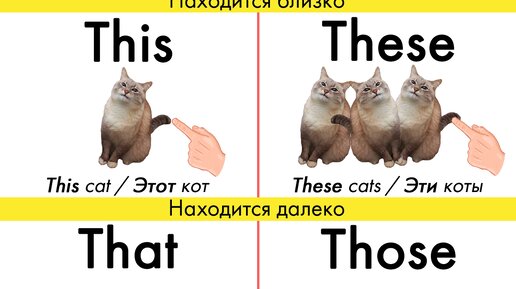 Мы решили сделать для вас карточку с котейками, которая поможет вам раз и навсегда понять, когда употреблять this, that, these и those.