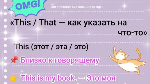 This vs That: учимся указывать на предметы! 👆✨ Путаете, когда сказать "this", а когда "that"? Все просто: это зависит от расстояния! Сохраняйте эти карточки, чтобы всегда говорить правильно 📌 Краткая шпаргалка: •📍 This — этот (предмет рядом с тобой) •🏞️ That — тот (предмет далеко от тебя) •💬 This is...
