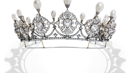 Уверена, многие знают дизайнера Диану фон Фюрстенберг. Фамилия эта у неё по мужу, и, что примечательно, после развода она её оставила - ещё бы - старинный известный род! Со множеством ответвлений. То была младшая ветвь, а вот сегодня речь о старшей. Вернее, об их украшении! Несколько лет назад на "Сотбис" выставили красавицу-тиару, которую ещё в 1880-х сделали для княгини фон Фюрстенберг, использовав для этого броши 1870-х. Жаль, что на портрете княгини с этой тиарой эта драгоценность не во всей своей красе, не с жемчугом, а с одним-единственным изумрудом - зато это интересный яркий акцент...