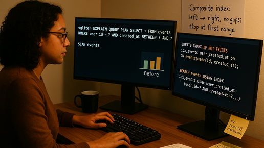 Когда говорят о производительности баз данных, чаще всего вспоминают PostgreSQL или MySQL. SQLite же воспринимается как «лёгкая» embedded-БД, где оптимизация не столь критична. Но опыт показывает обратное: даже в SQLite от правильного выбора индекса может зависеть не только скорость, но и сама возможность масштабирования. Об этом убедительно пишет Эван Шварц, который ускорил свой проект Scour на 35%, просто разобравшись в нюансах индексов. SQLite-планировщик обычно использует только один индекс....